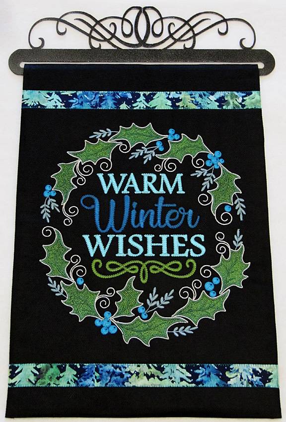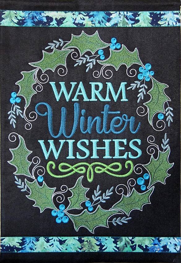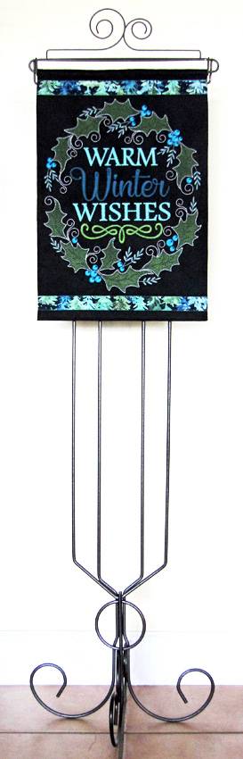 Warm winter wishes to all who enter your home. Adorn your entryway this winter with a beautiful, weather resistant banner that features bold Warm Winter Wishes lettering encircled by a wreath of holly leaves, berries and scrolling curliques. This elegant design looks lovely when displayed on a decorative stand or hung near your front door.